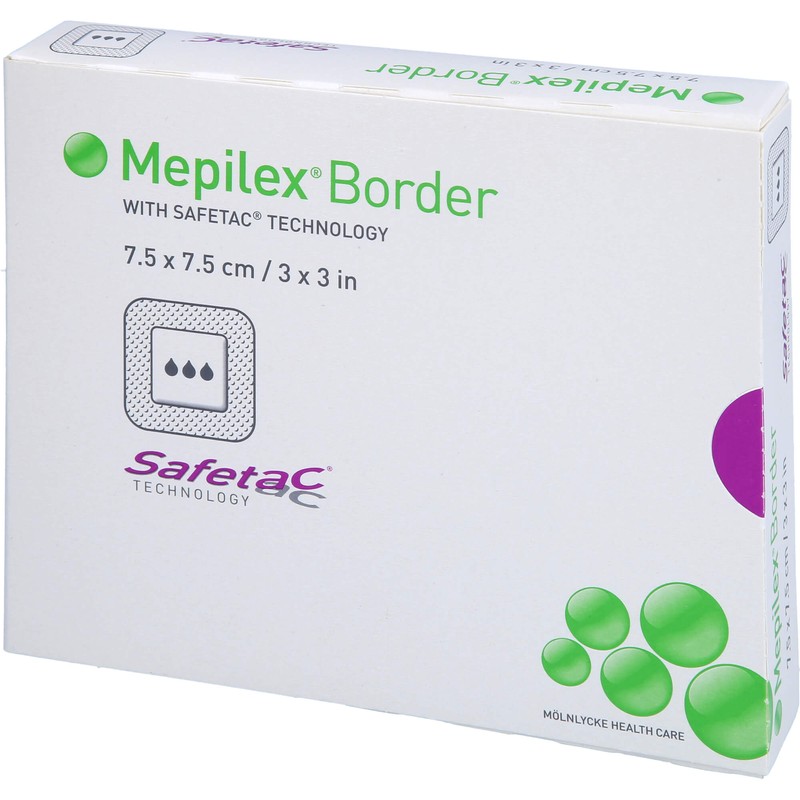 Mepilex Border ist ein vielseitig einsetzbarer All-in-one-Schaumverband und in verschiedenen Formen und Größen erhältlich. Er kann bei der Behandlung von chronischen und akuten Wunden eingesetzt werden. Außerdem ist klinisch erwiesen, dass er die Prävention von Druckgeschwüren unterstützt. Der bewährte Schaumverband mit fünf Schichten enthält Safetac - die originale Kontaktschicht mit Silikonhaftung, die die Schmerzen beim Verbandwechsel minimiert. Die Safetac Schicht liegt sanft auf der Haut auf, ohne mit der feuchten Wunde zu verkleben, sodass Sie den Verband ganz leicht entfernen können, ohne die Haut zu beschädigen. Dadurch ist der Verbandwechsel für Ihre Patienten weniger schmerzhaft. Die Absorptionsschicht nimmt Feuchtigkeit und Exsudat umgehend auf und schützt die wundumgebende Haut so vor Mazeration. Die Verteilungsschicht verteilt das Exsudat gleichmäßig auf die gesamte Fläche, damit der Verband länger hält. In der Retentionsschicht wird das Exsudat aufgesaugt und zurückgehalten, damit die wundnahe Schicht weiterhin mehr Flüssigkeit absorbieren kann. Die Schutzschicht verhindert, dass Bakterien und Viren in die Wunde gelangen und erreicht einen besseren Feuchtigkeitsausgleich als andere vergleichbare Verbände. Mepilex Border steht für ein ausgezeichnetes Exsudatmanagement.