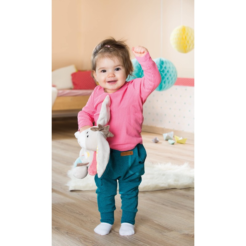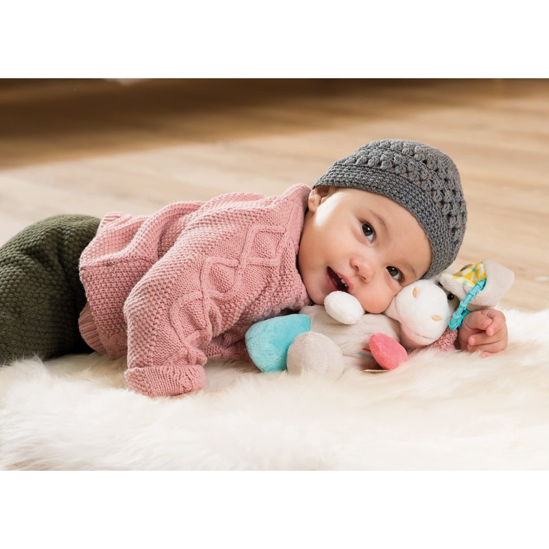 - Discover with all your senses – cuddly toy Muli playfully promotes your baby's touch, vision and hearing: a teething ring in the right ear helps teething, the left ear crackles, the right foot rattles and a squeak in the stomach that makes sounds when pressed