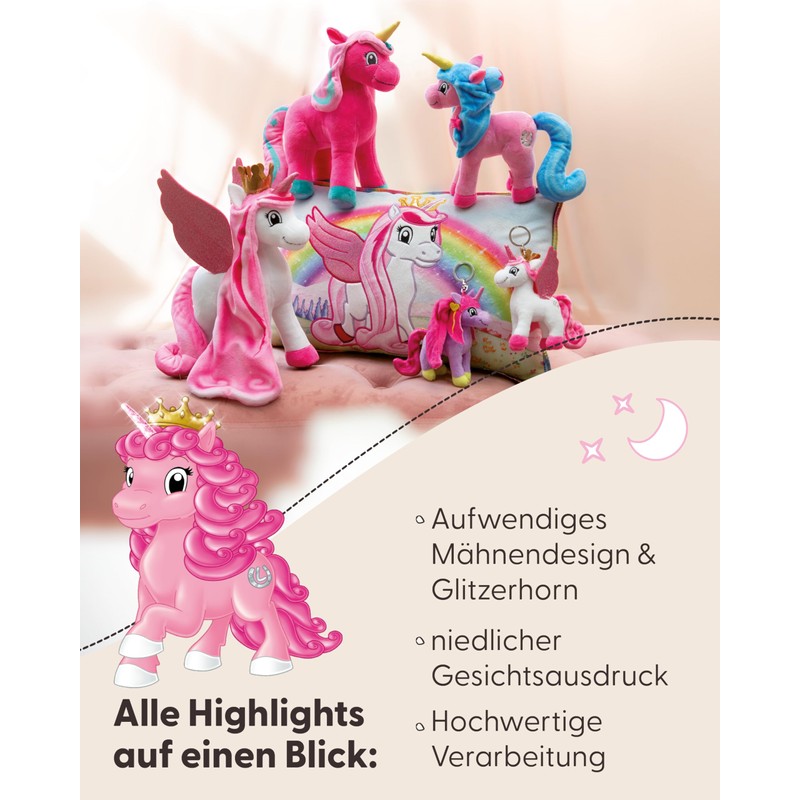 - Lovingly designed plush horn: the magically beautiful Lissy Pony unicorn Selina invites you to love, play, dream and collect. With Selina, you can also recreate the exciting adventures of the Lissy Ponys