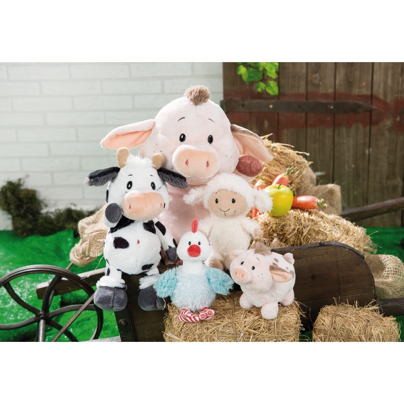 • Welcome to the farm! With sheep sheepmila, cow cowloon, pig pigwick and hen chicklinde, four popular yard animals are waiting to be closed into the hearts of cuddly toy fans. For the Farm Friends collection, NICI uses almost exclusively plush and fillers made from recycled materials. For this purpose, especially old PET bottles are processed into RPET. The plush materials and fillers are then made from these new RPET yarns.