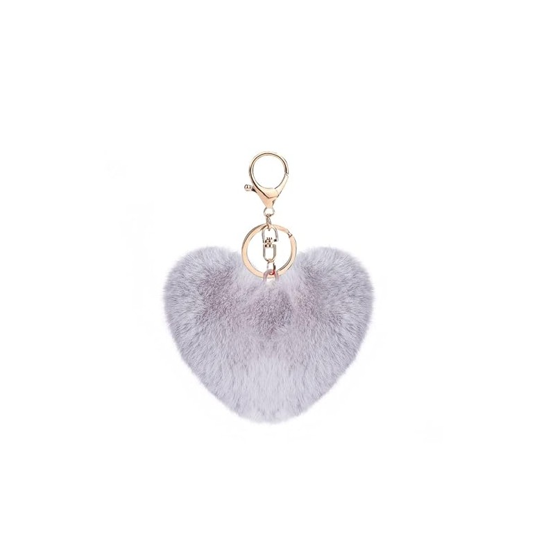 NICIFOAM Artificial Faux Rabbit Fur Keychain Fluffy Heart Plush Ball Pom Charm Key Chain Cute Car Key Decor Purse Handbag for Women Light Grey