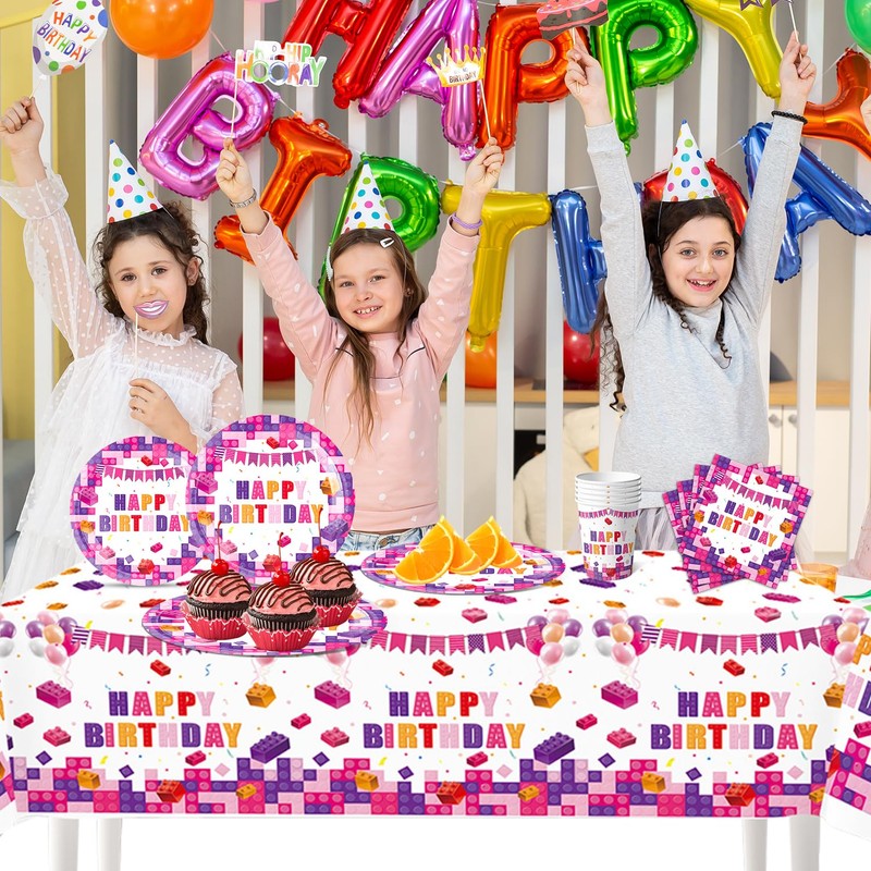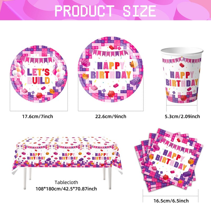 - Unique Decoration: Beautiful pastel color scheme featuring pink building block, it is deeply loved by building block enthusiasts, create an interesting and romantic atmosphere. Cute birthday party packs are perfect for kid.