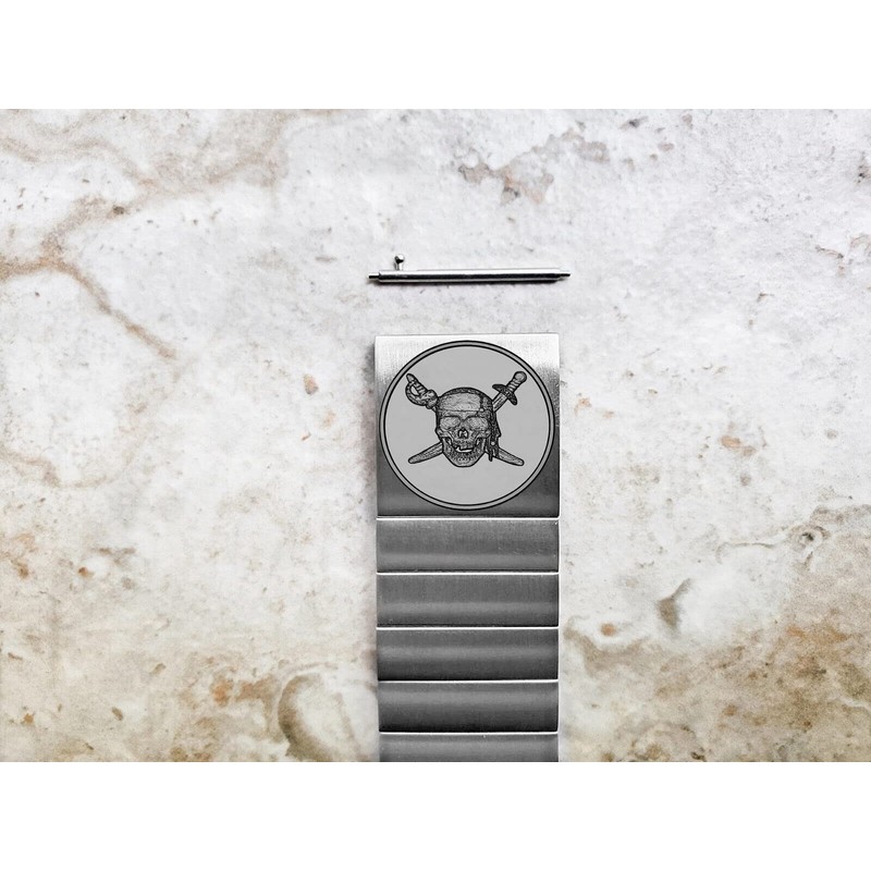 - You will receive 1 Silver Stainless Steel Engraved with Motif Band Strap and 2 Quick Release Pins. Easy to Install and Attach to Smartwatch.