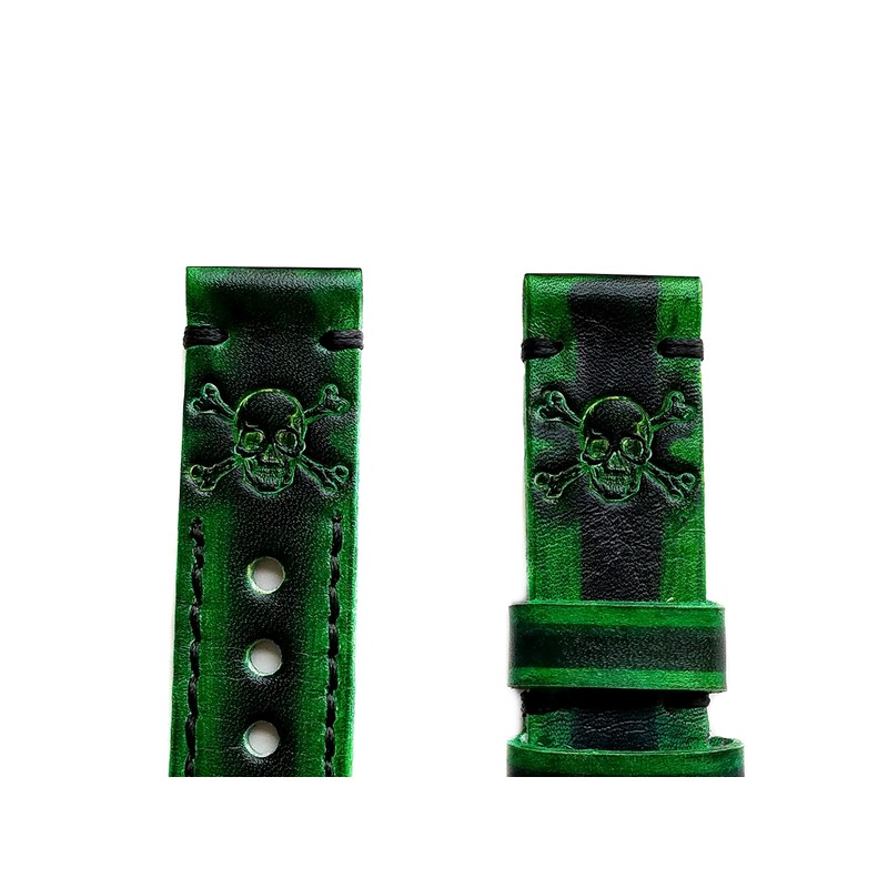 NICKSTON Green and Black Skull Crossbones Band Compatible with Pebble 2, 2 SE, Time, Time Steel, and Classic Smartwatches Embossed Brushed Genuine Leather Strap Pins Tool B22 (4. Gold Color Smooth Buckle)