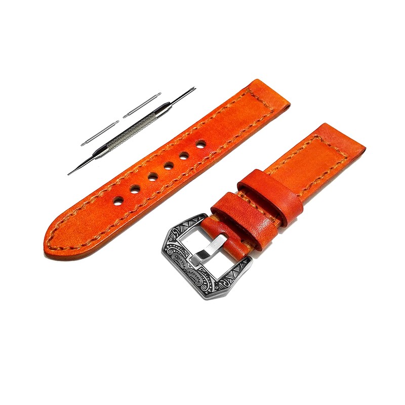 - You will receive 1 (One) High Quality Genuine Leather Watch Band Strap (2x Pins 1x Buckle and 1x Tool - included). Easy / Quick to Install and Take Off Smartwatch..