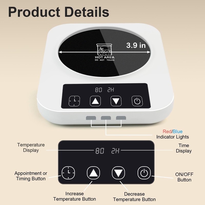 - [Easy to Use]: This compact heat warmer mat is easy to store and maintain. The included USB plug is compatible with standard 5V2A output adapters, convenient to use anywhere. The digital temperature, the heating plate temperature and the actual temperature in the yeast jar may have an error of 3-5 degrees due to different outdoor environments. When using, it is recommended to check the temperature first to achieve the fermentation temperature you need most