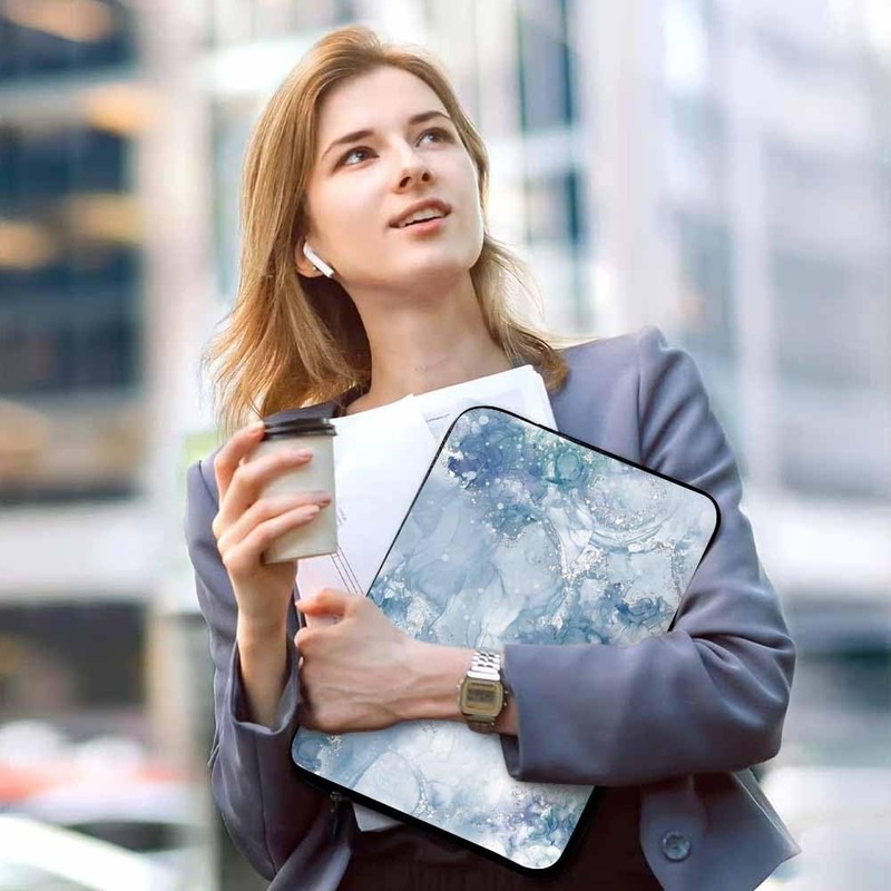 Nicokee Laptop Sleeve Bag 15.4 15.6 Inch,Blue Mable Black Ink Design Vintage Protective Polyester Computer Cases Laptop Cover Briefcase Bag Tablet Travel Cover