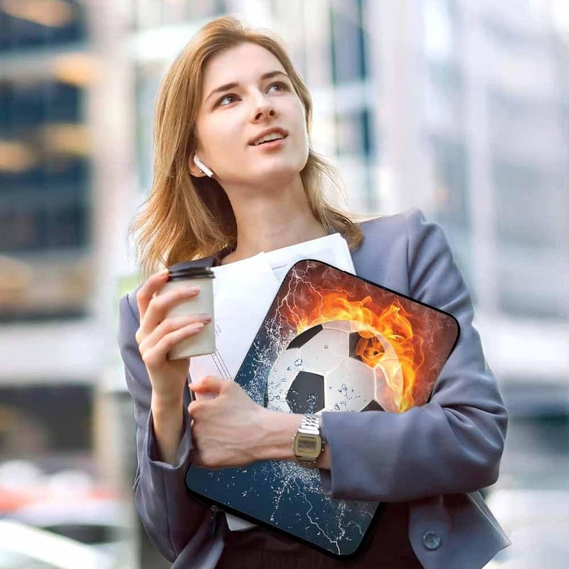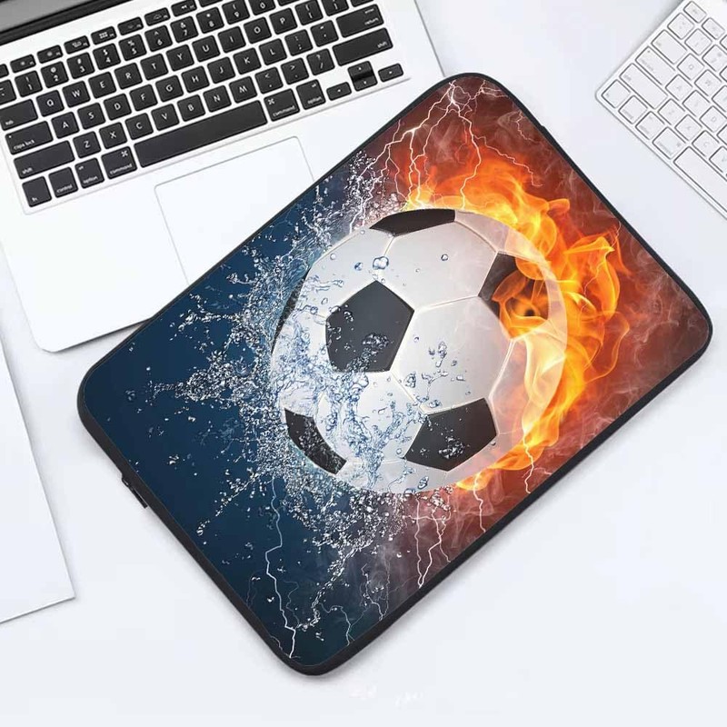 Nicokee Laptop Sleeve Bag 15.4 15.6 Inch,Soccer Ball in Fire and Water Football Protective Polyester Computer Cases Laptop Cover Briefcase Bag Tablet Travel Cover
