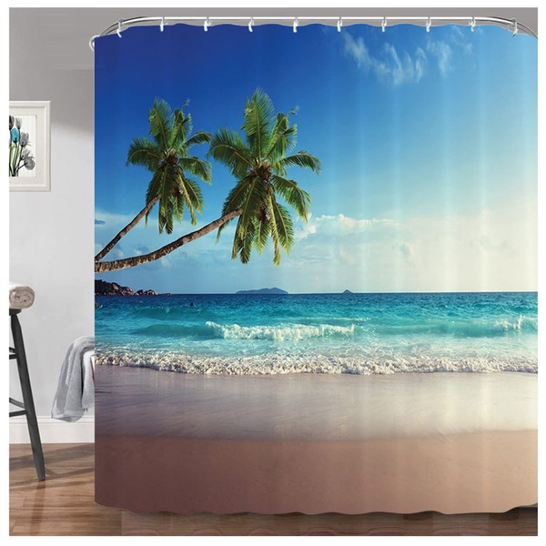 - The beach shower curtain not only protect your privacy, but also prevent the spray from splashing outside the shower.You can use it shower curtain to decorate your bathroom.