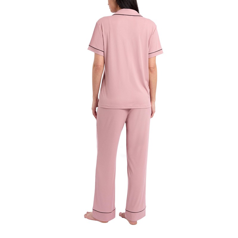 Who needs plans when staying in looks this good? Our signature ribbed knit matching pajama sets marry a luxe look with ultimate comfort. Elegant contrast piping details outline your notch-collar nightwear for a set you'll be proud to show off. Deliciously soft and stretchy fabric feels like a dream against your skin, pairing perfectly with a loose cut and gentle elastic. Self-care and sweet dreams have never been so easy.
