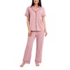 Nicole Miller New York Women's Pajamas 2 Piece Soft Ribbed Notch Collar Button Down PJ Set, Gemini, Medium