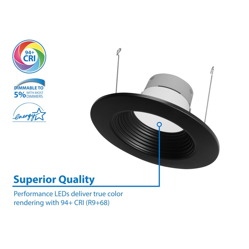 - Fits standard 5-inch and 6-inch recessed housings (IC-rated)