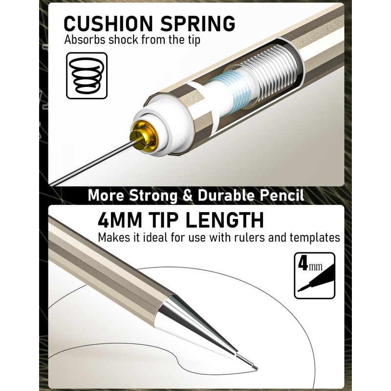 - Fancy Design:The full metal HB lead pencils come with a polygonal barrel,which is comfortable to hold and non-slip on your hand,equipped with eraser refills, ensuring accurate erasure of handwriting, 4 mm tip length makes it ideal for use with rulers and templates.various line size (0.3 mm,0.5 mm,0.7 mm & 0.9 mm) satisfy your daily demand