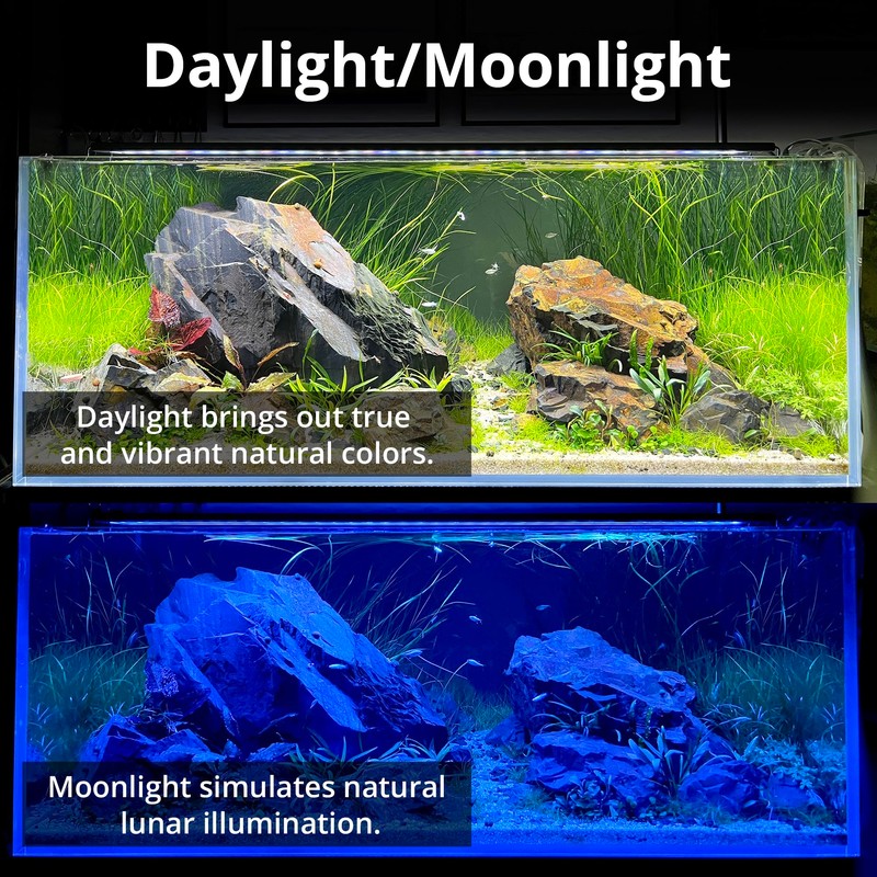 - Day+Night Cycle: The fish tank light can perfectly simulate the natural day and night cycle, easy to start. Time and color spectrum can also be customized for your exact needs