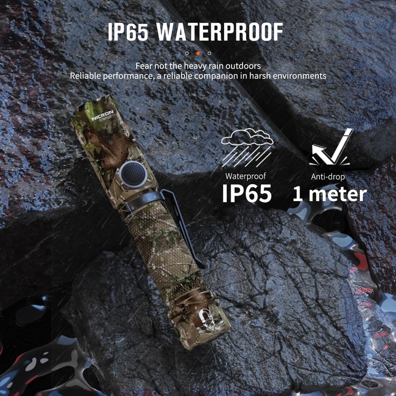 - 【Wide Application】 Exquisite appearance design and high end camouflage finish,it is very suitable as a gift, The people must praise it when you take out this flashlight. And you can use it for Hiking bay warning light,camping, auto repairs ,Emergency ,etc