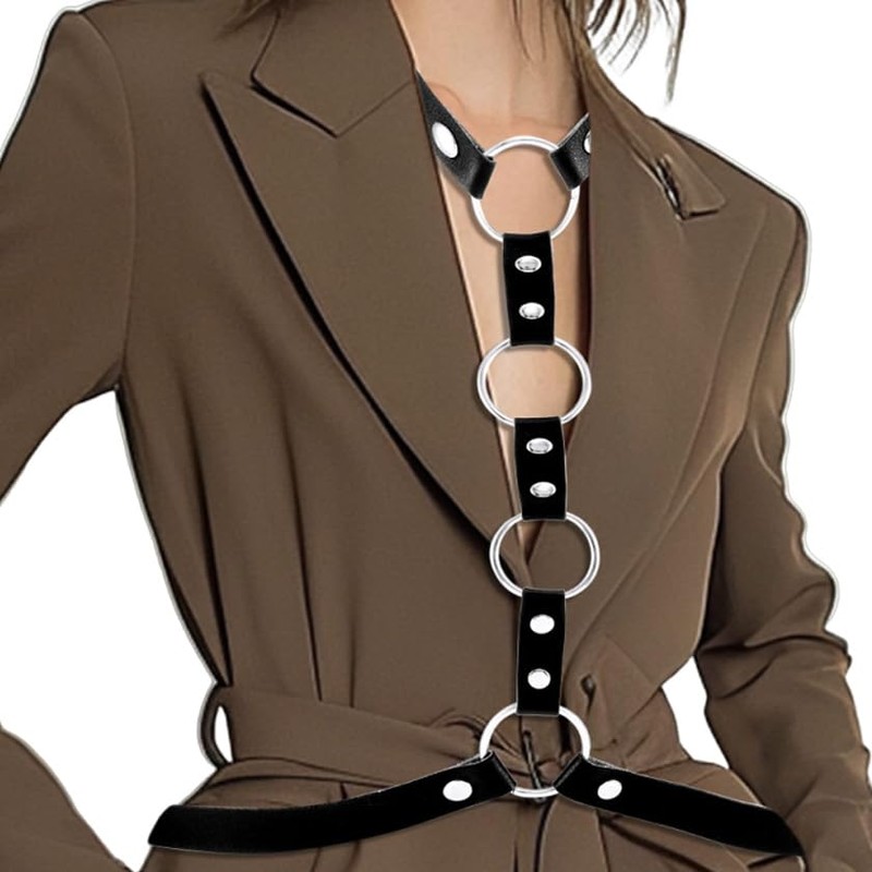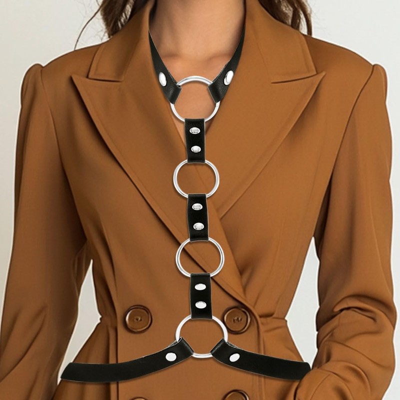- Leather harness for women can be paired with corsets, crop tops, or dresses for a captivating, high-fashion edge.