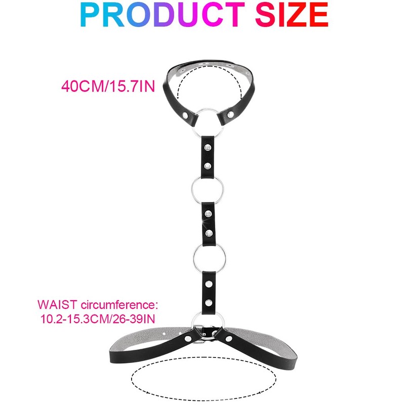 - Body harness for women has a waist circumference of 26-39 inches and a neck circumference of 15.7 inches, adjustable.