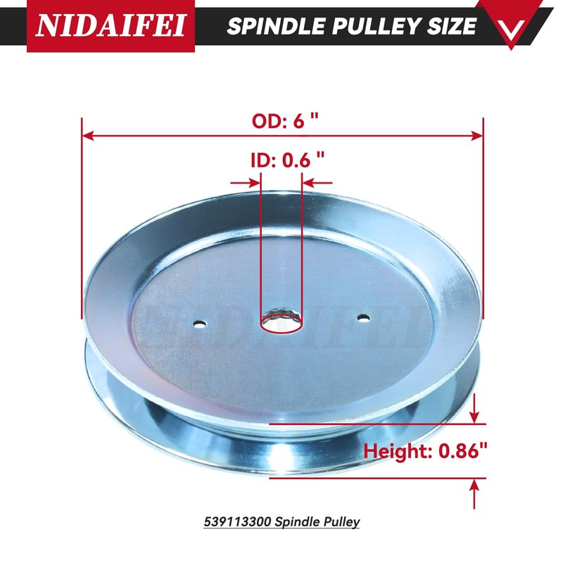 - 【SPINDLE PULLEY】539113300 Spindle Pulley Replaces 539113300; Specification: Height: 0.86", OD: 6", ID: 0.6"