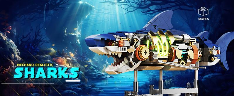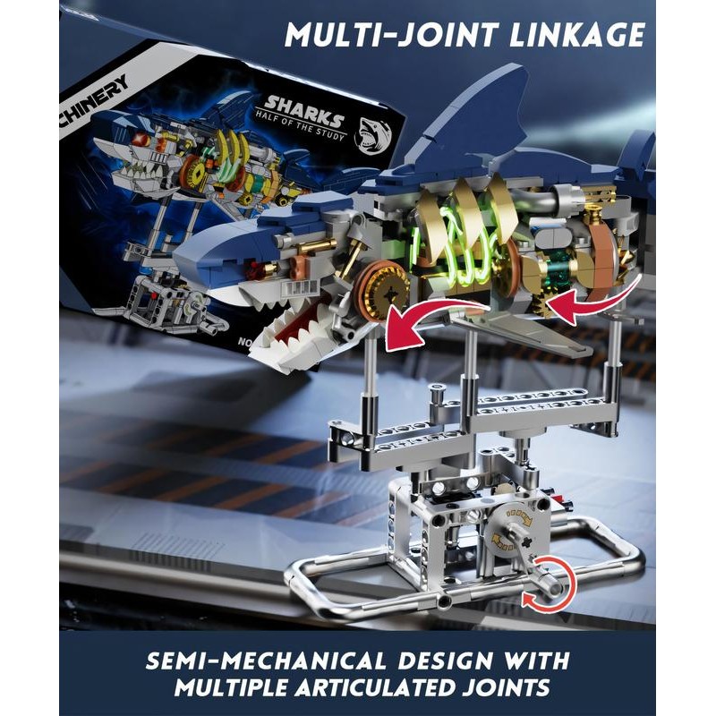 - Immerse in the Pleasure of the Sea Creatures- This 687pcs shark building cyberpunk marvel features intricate mechanical joints and lifelike shark characteristics, making it a captivating mechanical ocean masterpiece.