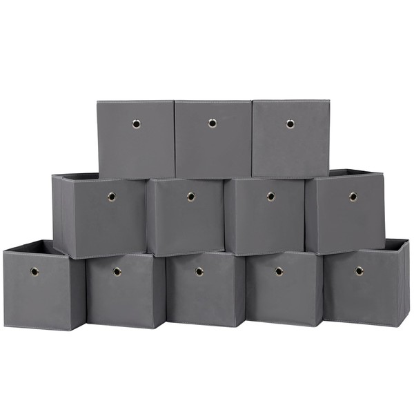 NieEnjoy Foldable Storage Cubes Bins ,11 Inch Cloth Storage Cube Fabric Storage Box Cubes Organizer Baskets with Dual Handles for Home Organizer Set of 12 (Grey)