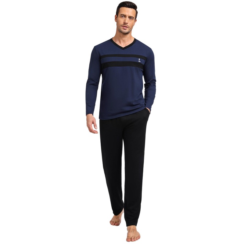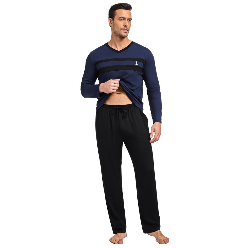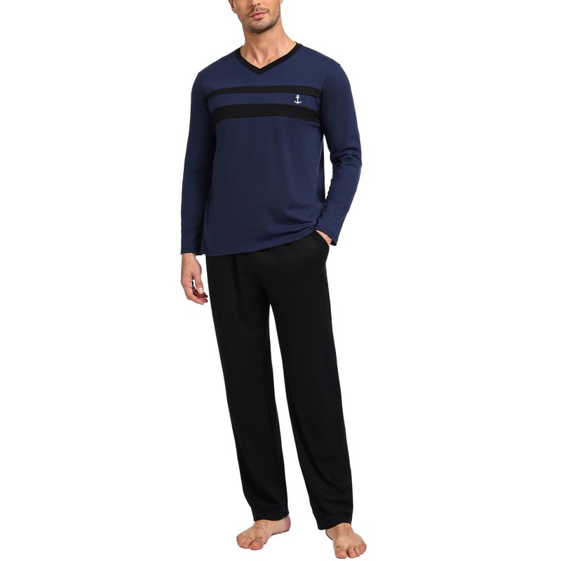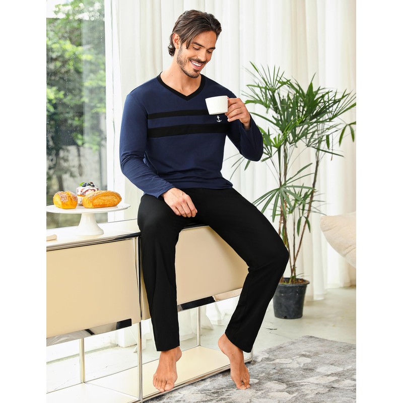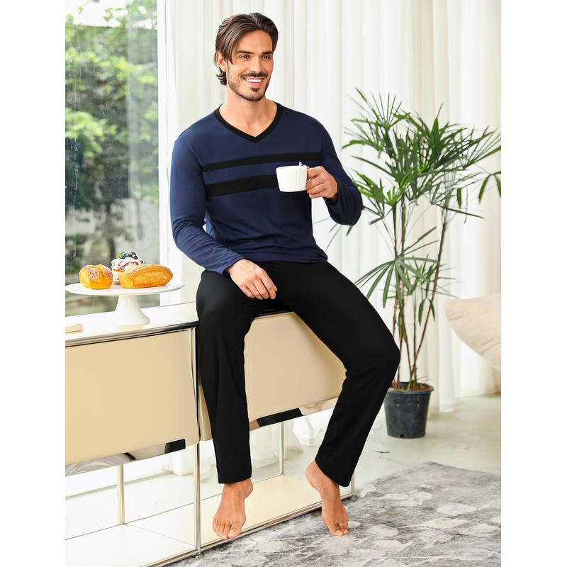 - 🍀🍀Fashionable Design: Our mens pyjamas feature trendy color-blocking patterns. The contemporary color-blocking designs exude confidence and elegance, transforming your home lounging into a fashionable experience. Add charm and sophistication to your everyday comfort with these mens nightwear.
