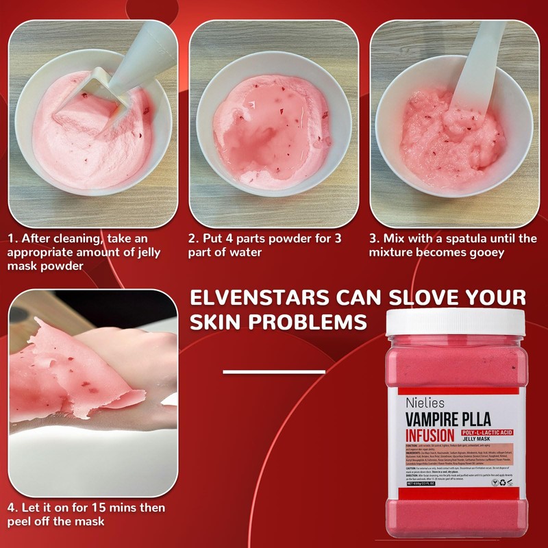 - Achieve smooth and revitalized skin with our Vampire Jelly Mask Powder, designed for professional use. This jelly mask creates a protective skin and moisture for a calming and hydrating effect.