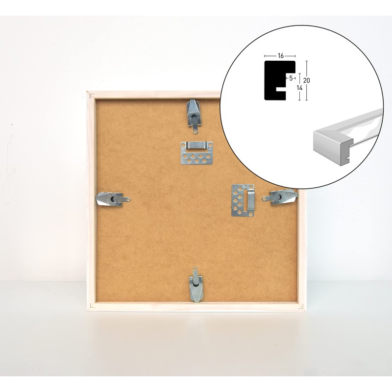 The square 16mm narrow profile is made from European pine wood. The frame is FSC certified (licence code: FSC C021405) and has a MDF back panel with high-quality torsion springs. These allow a quick and easy change of the record cover. Hangers are mounted on the back panel in portrait and landscape format. The frame is equipped with a 1.2 mm thick, shatterproof plastic disc (polystyrene). A film is applied to both sides of the windscreen to protect against scratches. Be sure to peel off the films before use. Give your long playing records an attractive frame.