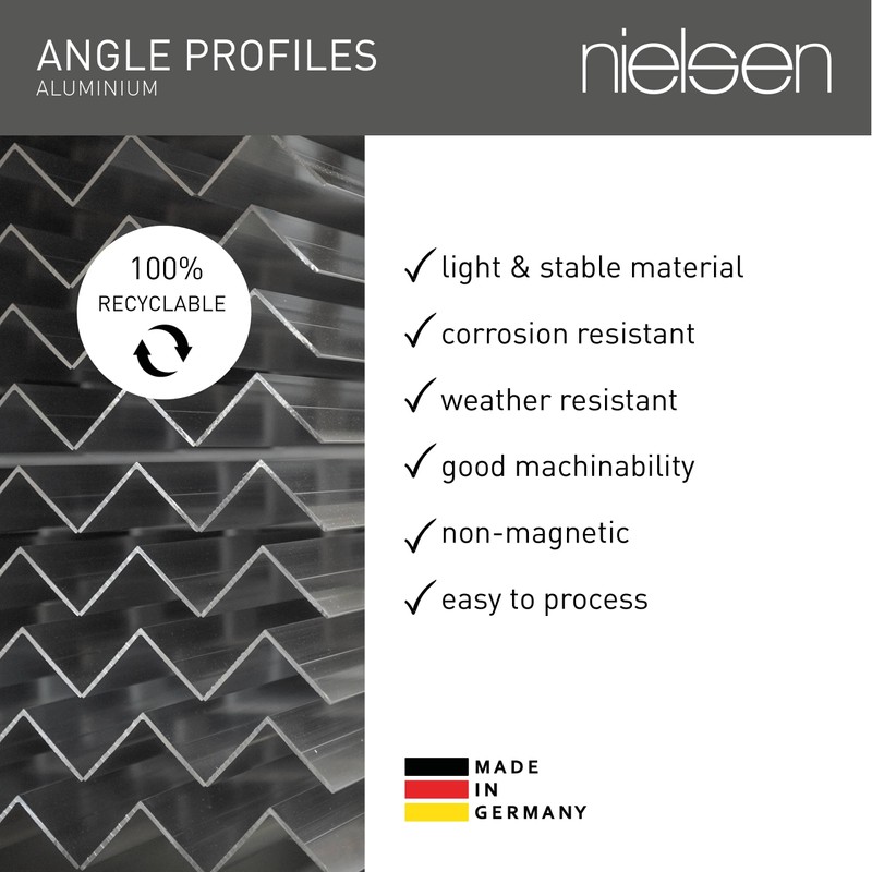 nielsen nielsen Aluminium L-Shaped Angle Profile, Matt Anodized, 2000x10x10 mm, Thickness 1mm, Length 2m, Corner Trim, Edge Protection, Finishing and Decoration