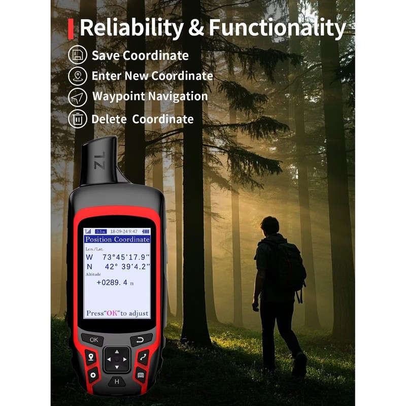 - 4 IN 1 WAYPOINT FUNCTION: Can get and save gps coordinates of your current location, enter known coordinates, and navigate to this location, delete coordinates that have already been there