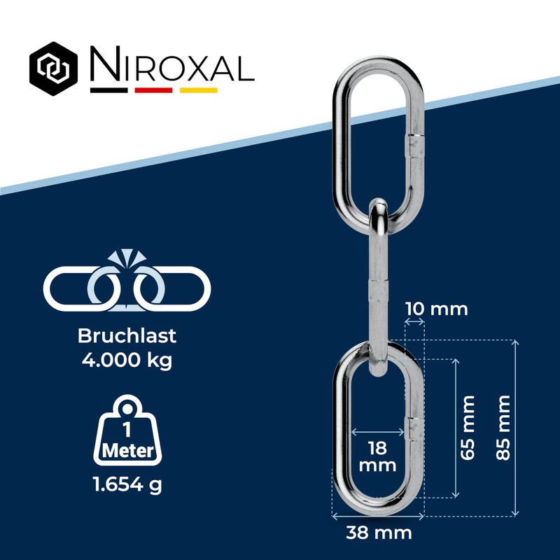 NietFullThings Stainless Steel Chain V4A Long Links in Many Lengths and Thicknesses on Piece, Anchor Chain DIN 5685 DIN 763 Sold by the Metre, Rust-Free Niro Stainless Steel Link Chain Barrier Chain Buoy Chain, multicolour