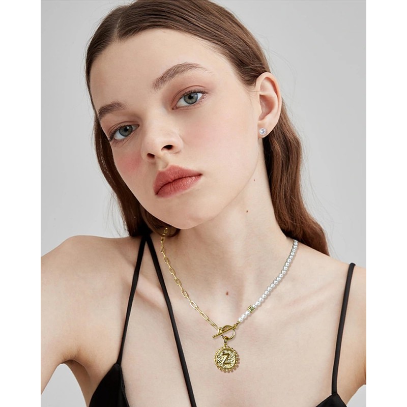 - Personalized Selection: With 26 initial to choose from and two clasp styles - the Lobster clasp and OT clasp, this necklace offers easy wearability. The half pearl half chain necklace design creates a tasteful collision between retro and modern styles, with the added sophistication of dual letter pendants.