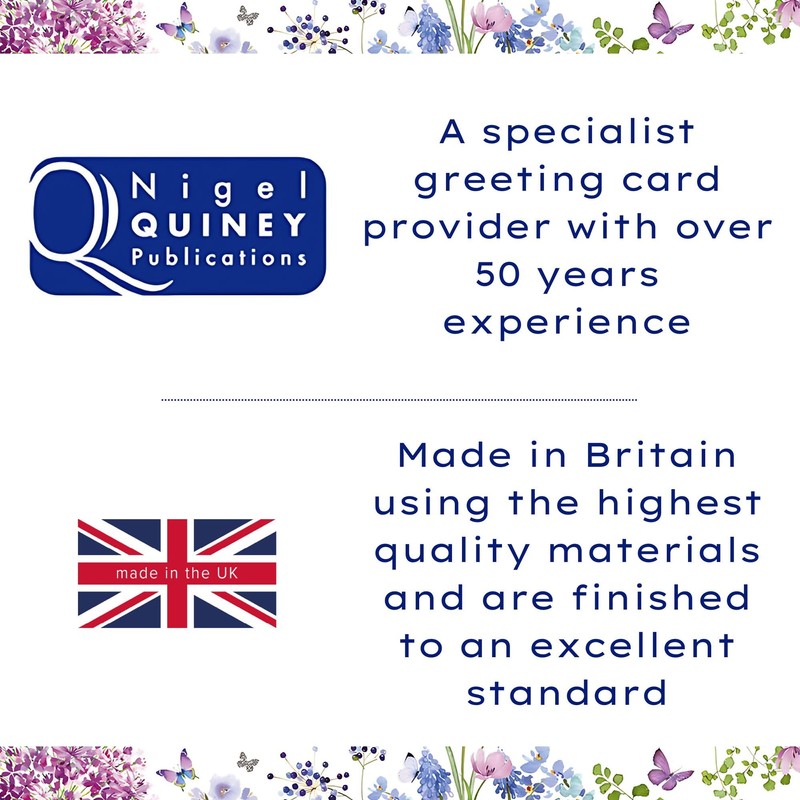 - NIGEL QUINEY: A premium UK card company, renowned for creating exquisite greeting cards accentuated with an array of glittering finishes. Their cards are printed on high quality board.