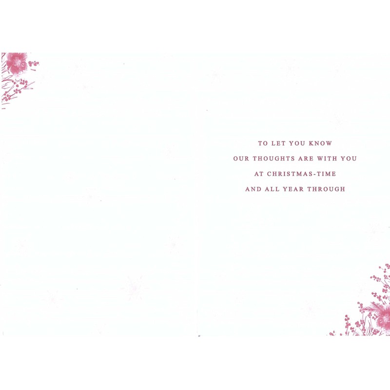 - Colour design insert leaf inside with message: To let you know our thoughts are with you at Christmas-time and all through the year