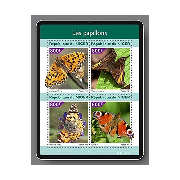Niger - 2021 Butterflies, Fritillary, Painted Lady - 4 Stamp Sheet - NIG210107a