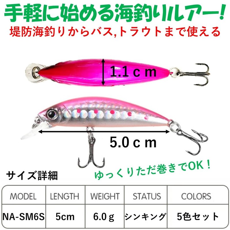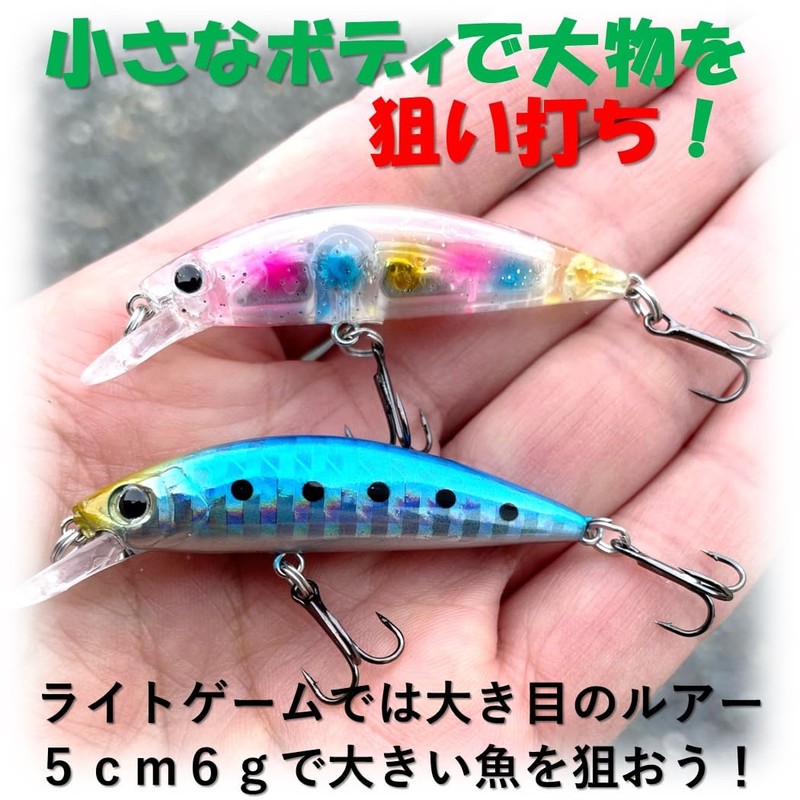 - Fixed weight 0.2 oz (6.0 g) of low center of gravity!! A set of lures that can be used in the current embankment light lure game. It can be used in a wide range of situations, from embankments to aging, mebaring, sea bass, flounders, and blues, as well as for trout and black bass