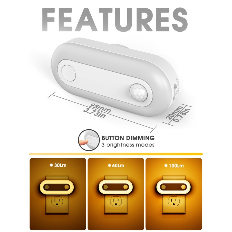 - 【Adjustable Brightness】This motion sensor night light offers 3 brightness levels (30/60/100LM) that allows you to set dim light for sleeping area to meet your different brightness needs.