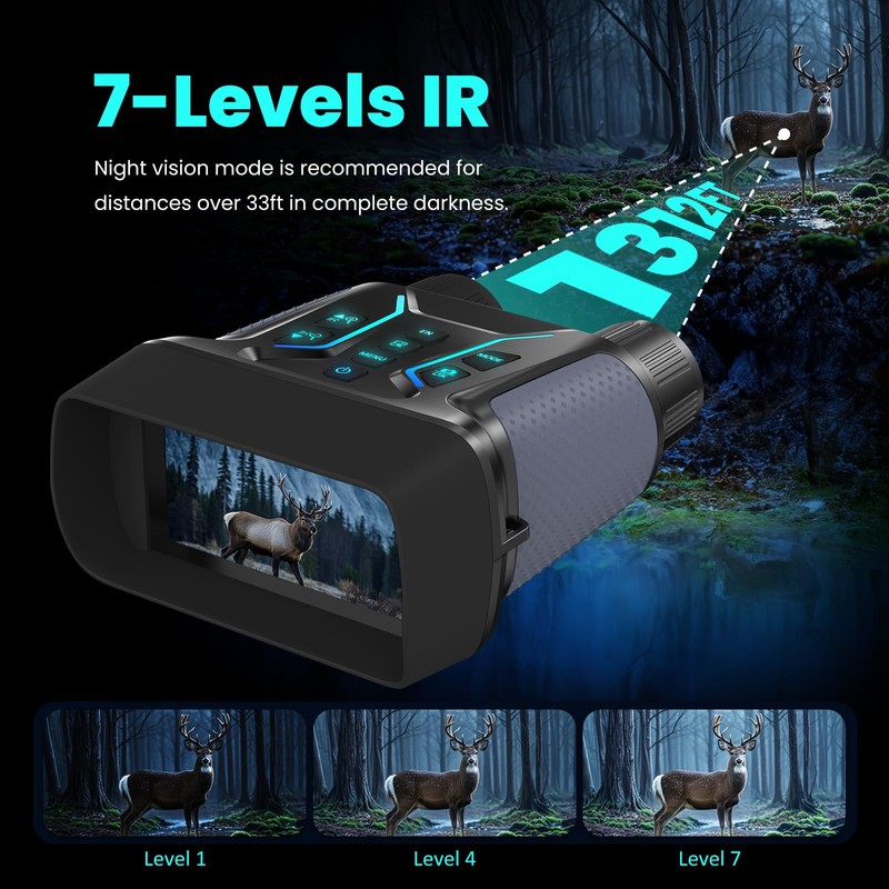 • ๐Œ๐ฎ๐ฅ๐ญ๐ข-๐‹๐ž๐ฏ๐ž๐ฅ ๐ˆ๐ง๐Ÿ๐ซ๐š๐ซ๐ž๐ ๐š๐ง๐ ๐™๐จ๐จ๐ฆ: With 7 infrared levels and 8x digital zoom, these binoculars night vision offer adaptability for various environments and distances, catering to both adults and kids.