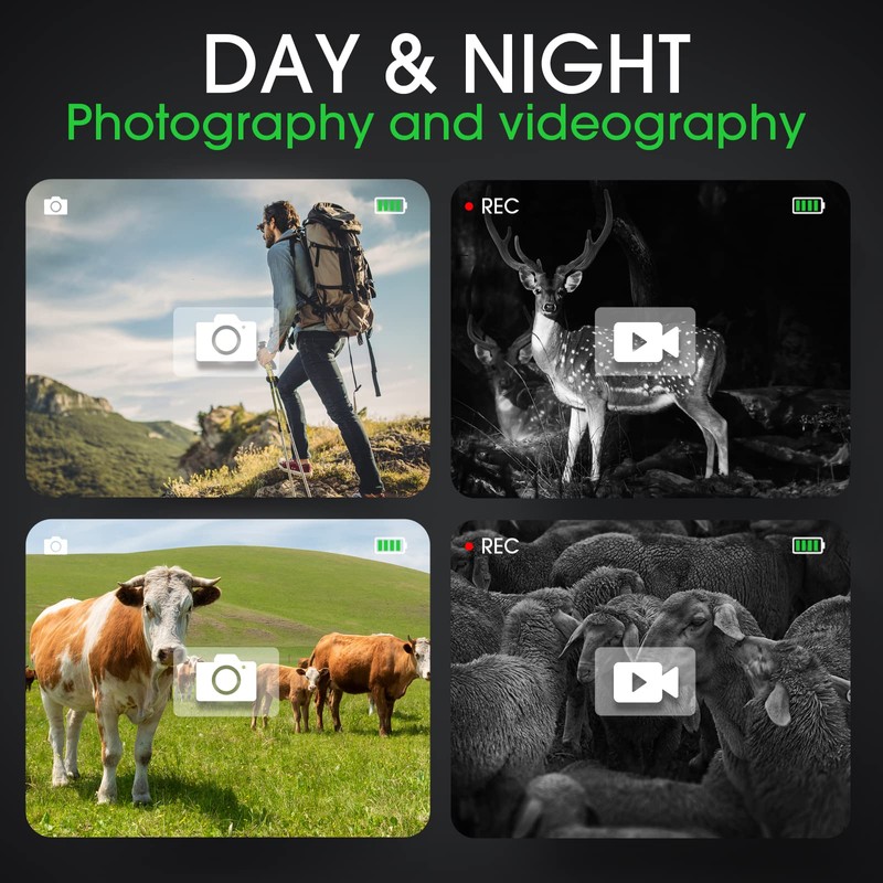 - LIGHTWEIGHT & PORTABLE: The night vision monocular can be used for hunting, observation, bird watching, security surveillance, camping, indoor and outdoor. The monocular night vision comes with 1 stable tripod, 1x 32GB memory card, 1x USB data transfer charging cable(type-C), 1x neck strap, 1x hand strap, 1x storage bag, 1x cleaning cloth, 1x manual