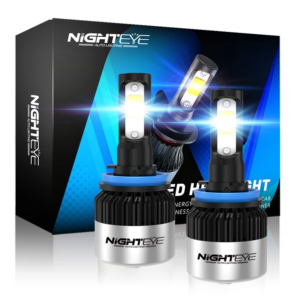 - 【Max light output】 NIGHTEYE S2 Series H11 LEDs provide 10 times as much light as a halogen bulb and 6 times as much light as an equivalent-sized LED chip!Compared to regular halogen bulbs, provides more lighting visibility and more even lighting between sections of a vehicle, Make them have perfect night driving conditions.