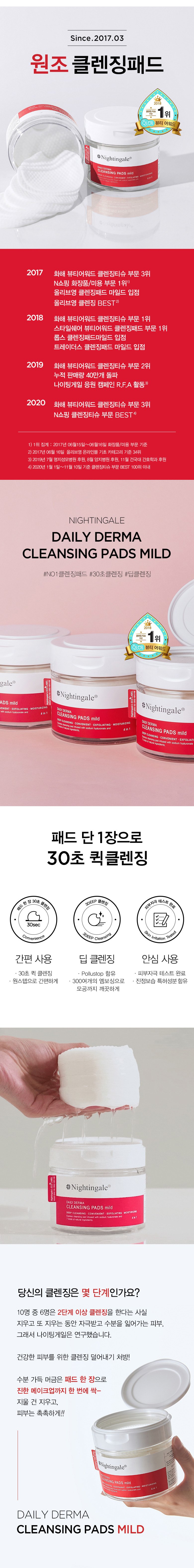 Nightingale Daily Derma Cleansing Pads Mild 70 Sheets / 나이팅게일 데일리 더마 클렌징 패드 마일드 70매