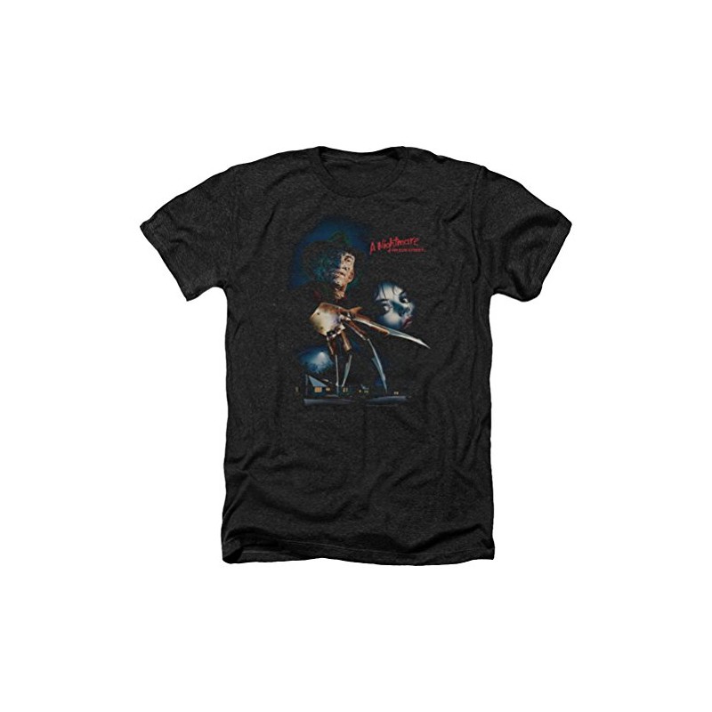 Mens shirt shows the poster artwork for the classic 1984 slasher movie. Nightmare On Elm Street first introduced audiences to Freddy Krueger, who went on to become one of the most iconic characters in cinematic history!