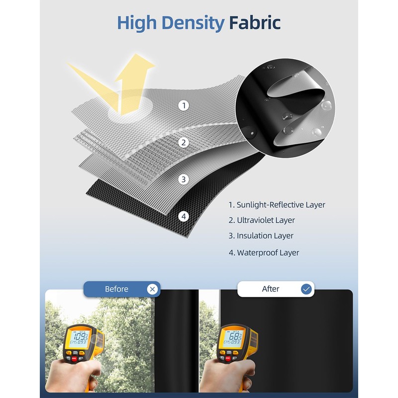 • 100% Complete Blackout: NIGHTON blackout curtains are crafted from high-density 420D Oxford fabric with a silver-coated backing, offering UV protection and total sunlight blocking for a completely dark space. Perfect for home theaters, nurseries, or RVs, they provide ultimate privacy and comfort