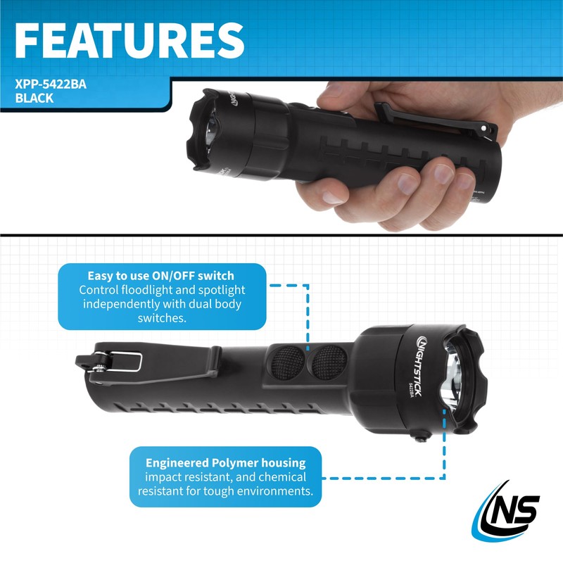 Nightstick XPP-5422BA Intrinsically Safe Dual-Light ATEX Zone 0 Flashlight, 3 AA, Black
