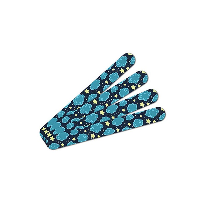Nighttime Sky with Clouds and Stars Pattern Double-Sided Nail File Emery Board Set 4 Pack