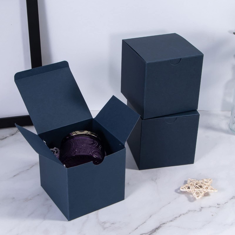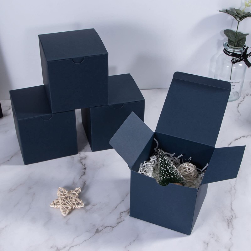NIGNYA Navy Gift Boxes, 3x3x3 Party Favor Boxes 50 PCS Navy Blue Kraft Paper Box with Lid for Party Favor, Ornaments, Bridesmaid Proposal, Bakery Cookies
