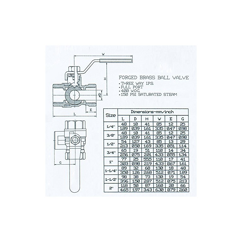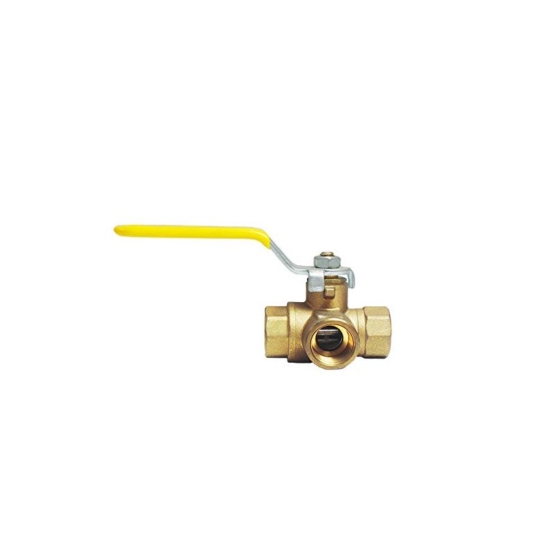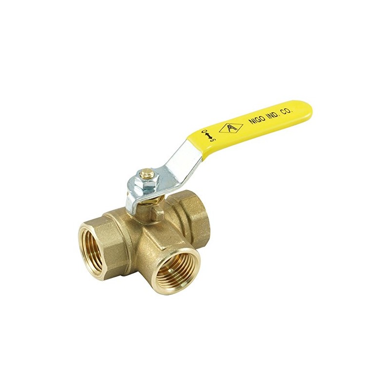 Nigo Industrial Co. 180SS Series 3-Way (L-PORT) Forged Brass Ball Valve, Lever Handle, NPT Female, Full Port 400WOG (1/2")