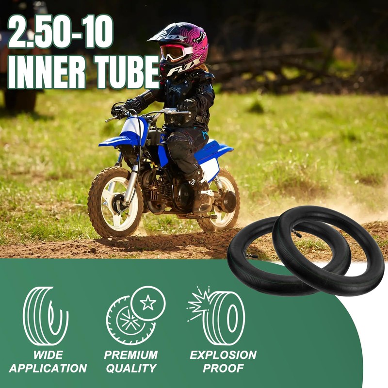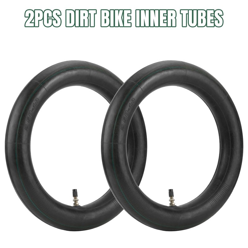 - 2.50-10 Dirt Bike Replacement Inner Tubes: Fits for dirt bikes with a 10-inch rim and 2.5 inches to 2.75 inches tire width. Pefect replacement inner tubes for 49cc, 50cc, and 70cc dirt bikes.