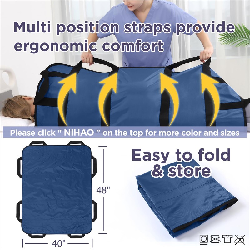 • TURNING, REPOSITIONING & LIFTING MADE EASY! Our double-sided nylon fabric transfer sheet is equipped with 8 heavy-duty, reinforced handles that will help you transfer, reposition, turn or lift any people with limited mobility with relative ease.