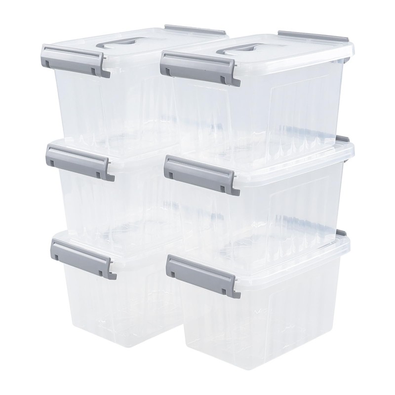 Nihenok 3 L Small Clear Storage Latch Box, 6 Pack Plastic Stackable Organizer Containers with Lids