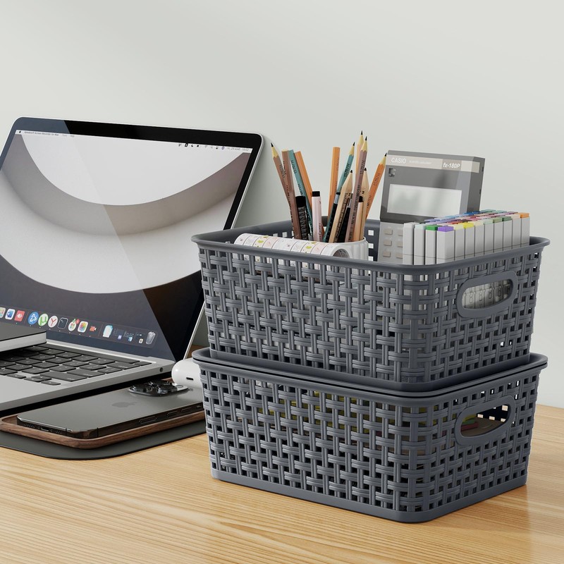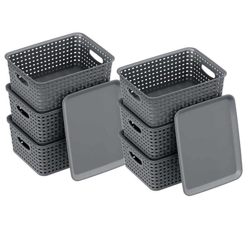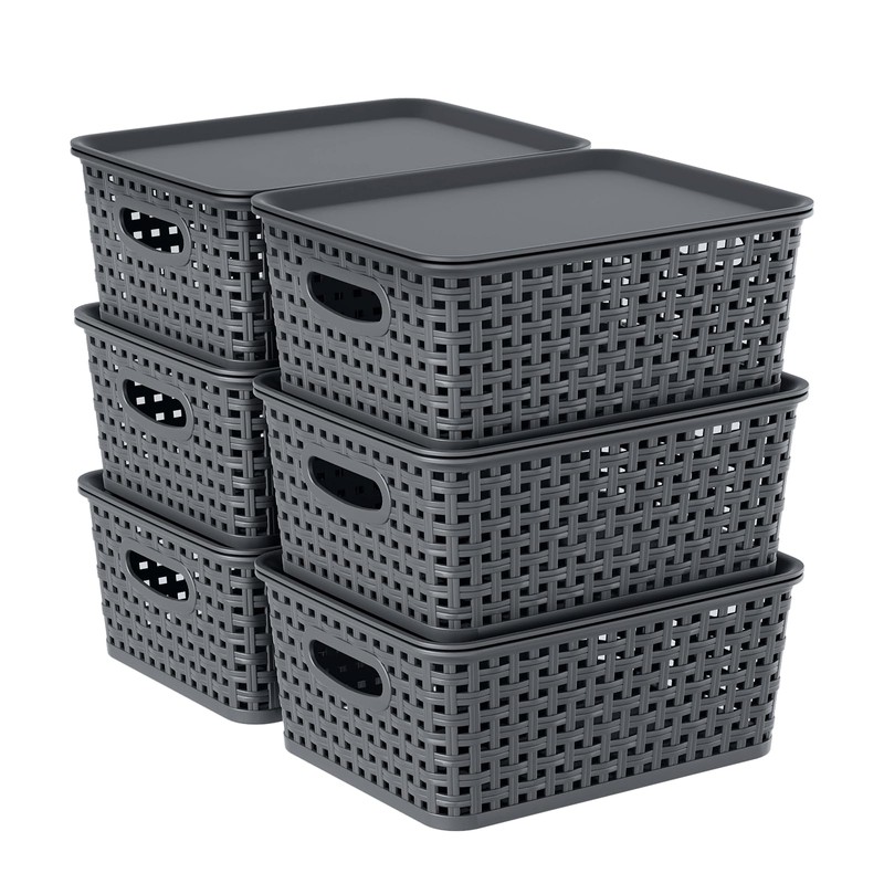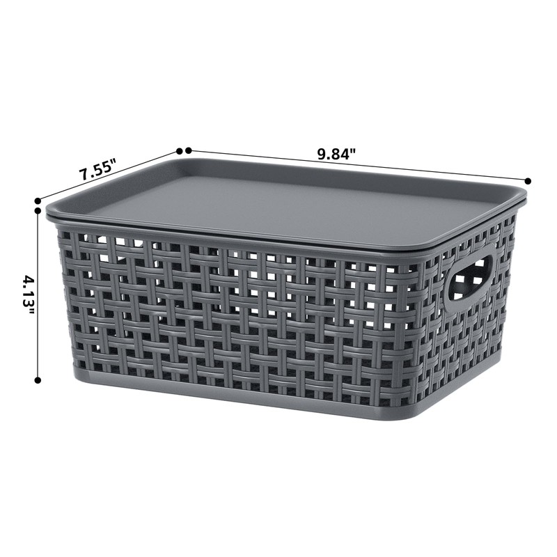 • Set of 6 pack plastic woven baskets with lid, each size: 9.84" x 7.55" x 4.13"